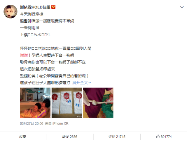 还记得2018年11月4日,谢依霖生第一胎,卸货成功的她,也是第一时间公布了自家女儿的照片,同时,感谢所有医护人员辛苦,在水中生产的她,应该是娱乐圈女明星的第一人了!