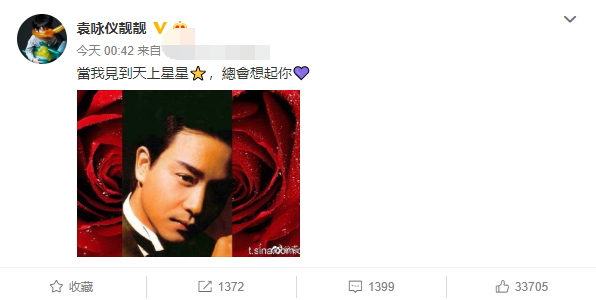 内地当红小生尹正已经连续9年的4月1日缅怀张国荣,同时自2013年起,他连续6年发文为张国荣庆生,而他对张国荣的称谓每年都不一样:“哥哥”“大明星”“偶像”“靓仔”。