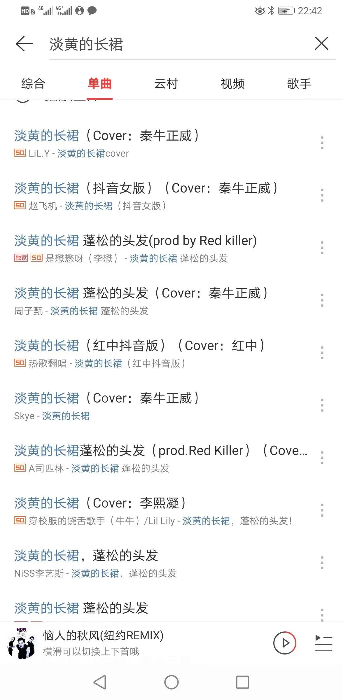 翻唱的热潮在音乐平台中也有所展现。在QQ音乐、网易云音乐等平台上,均有大量网络歌手或音乐人,翻唱并上传了此曲目。为了翻唱作品更有吸引力并结合热点,上传人都将曲目直接命名为《淡黄的长裙》,并在括号内标注(cover:秦牛正威)。目前,几首热门的翻唱评论数也已经超过了2000。