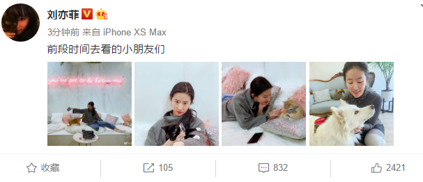 4月1日,是一个非常特殊的节日,刘亦菲也不忘出来凑热闹。不过她没有开玩笑捉弄人,而是在社交平台跟大家分享了自己与猫咪还有狗狗的玩耍照,还很亲切的配文:“前段时间去看的小朋友们