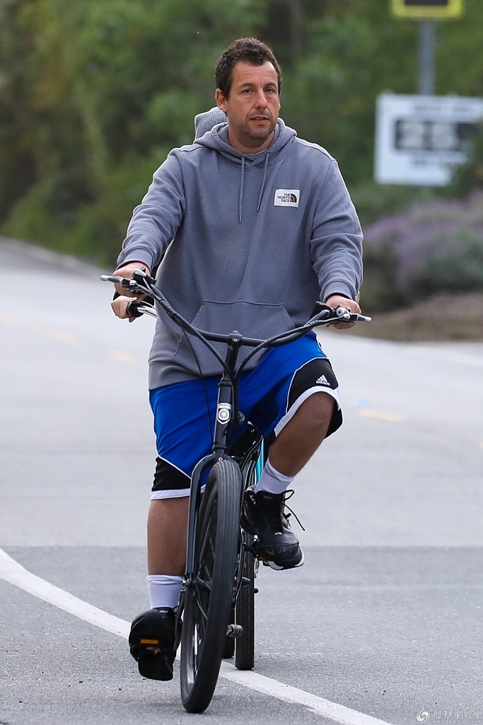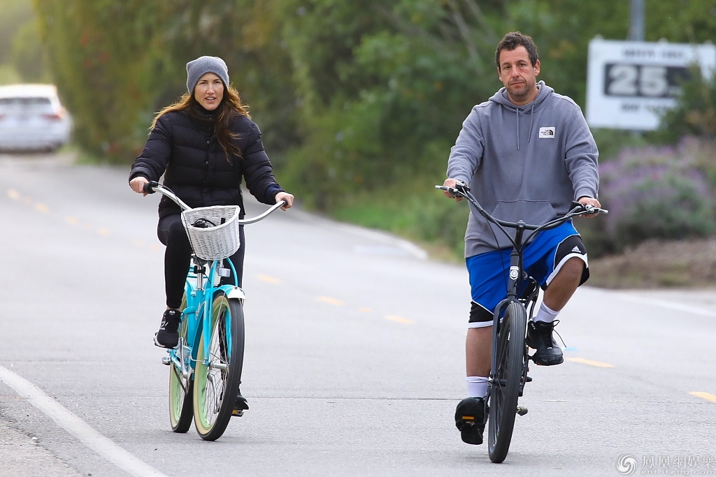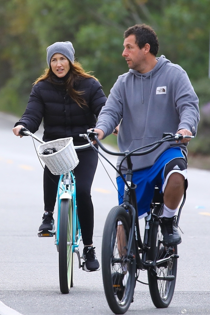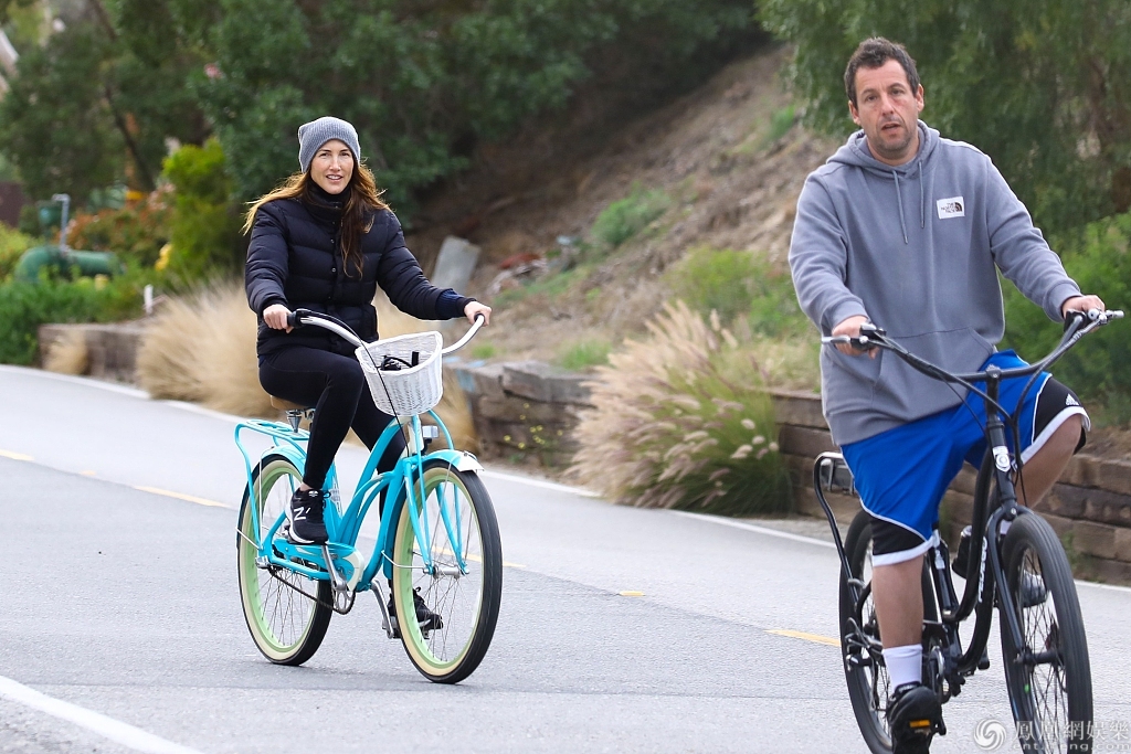 当地时间2020年3月31日,美国马里布,亚当·桑德勒(Adam Sandler)与妻子杰姬·桑德勒(Jackie Sandler)外出骑