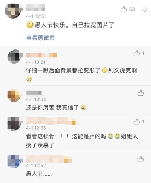 看来,应该是这段宅家的日子把她闷坏了,迫不及待跟粉丝开个“自黑”玩笑,祝大家愚人节快乐。