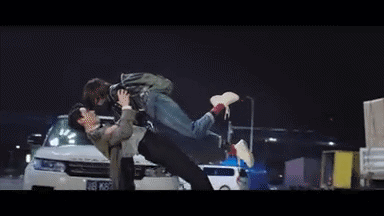 《你是我眼中的山川和海洋》中,男主在单杠上倒挂金钩,和女主cos了一回蜘蛛侠。