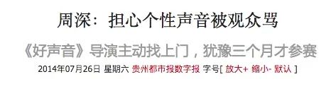 也是在转学跟家人闹得不愉快的时候,周深答应了好声音导演组的邀请。