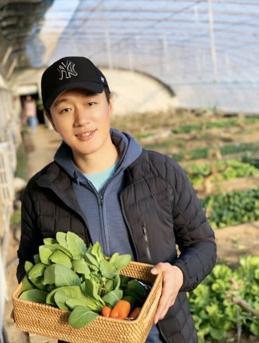 照片中,佟大为戴着棒球帽,身穿黑色棉衣,抱着一筐蔬菜对着镜头微笑,在阳光的照耀下,他浑身上下洋溢着幸福温馨的味道。