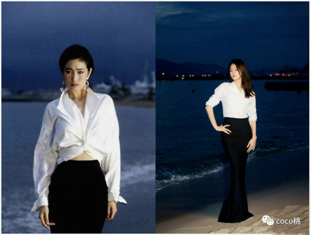 上一个尝试碰瓷巩俐的还是苗苗,《芳华》上映后,在戛纳电影节的间隙,穿着白衬衫学巩俐拍摄海滩照。