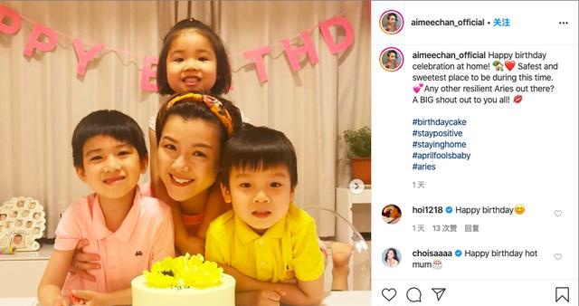 照片里,她的三个孩子紧紧地围绕在她的四周,女儿随了妈妈的甜美,儿子们和爸爸陈豪一样帅气,画面十分可爱又温馨。
