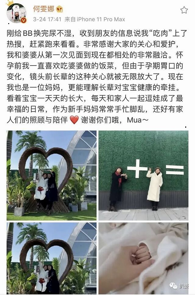 10月,何雯娜官宣怀孕。