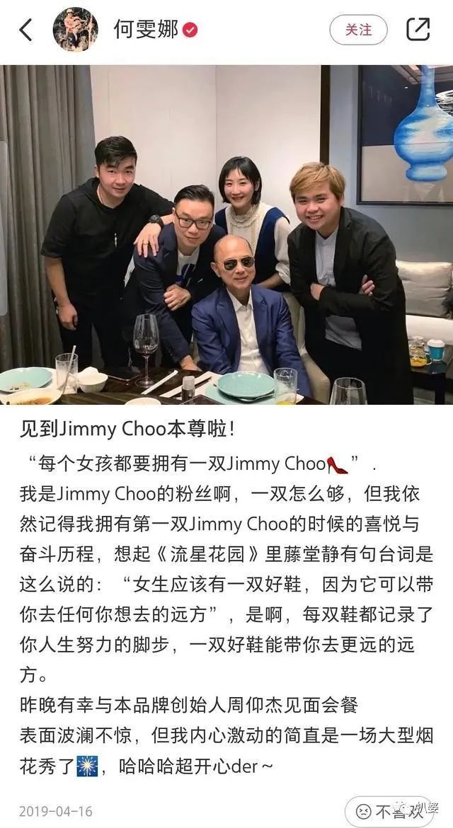 连交际圈都变成了和jimmy choo品牌创始人吃饭神马的。