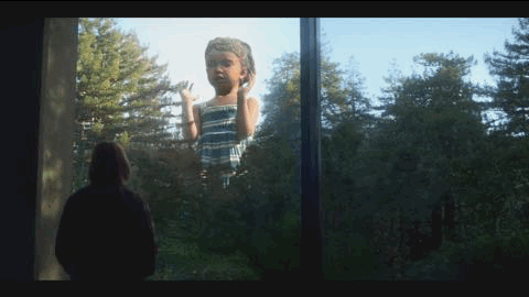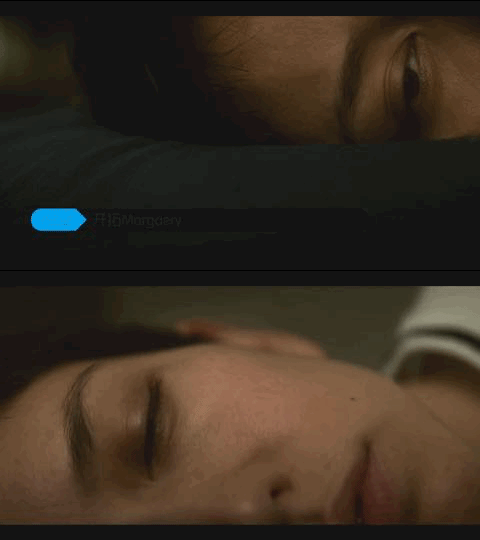 女主半边脸闭眼的画面,与后面女主另外半边脸睁眼的画面形成镜像。