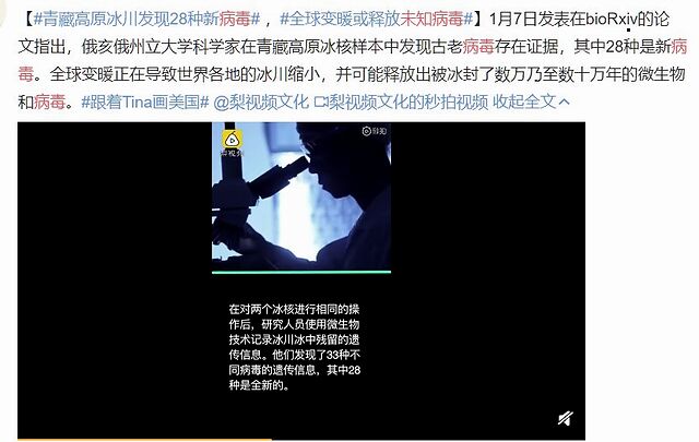 除此之外,因为全球变暖,那些被封印在极地、高原冰川里的病毒也许有一天将会苏醒。
