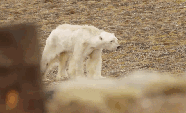 所以,外出捕食需要冰面作为短暂的休息地。但因为气温升高,大量冰面消融,失去了休息的地方。