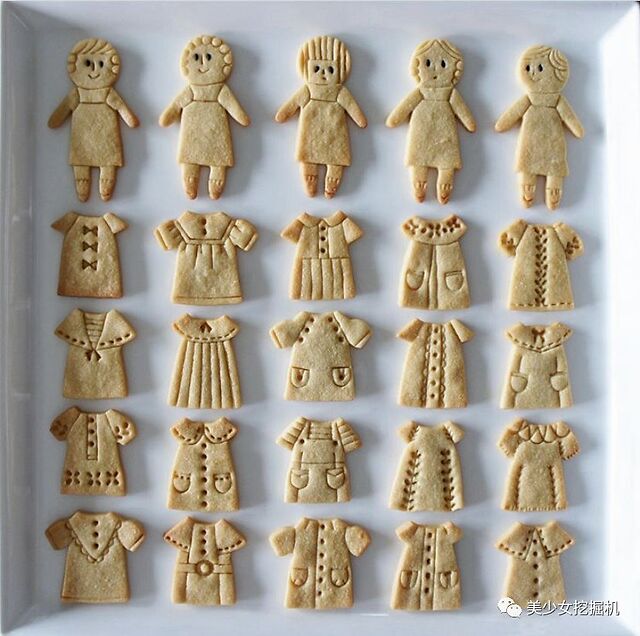 她很用心的做了很多不同类型的小裙子,有Polo裙、娃娃裙、JK裙等。仔细观察,还能发现每个娃娃也都是不一样的,每个娃娃都具有各自的特点。让孩子们在吃饼干的同时,还能体验换装小游戏的乐趣。