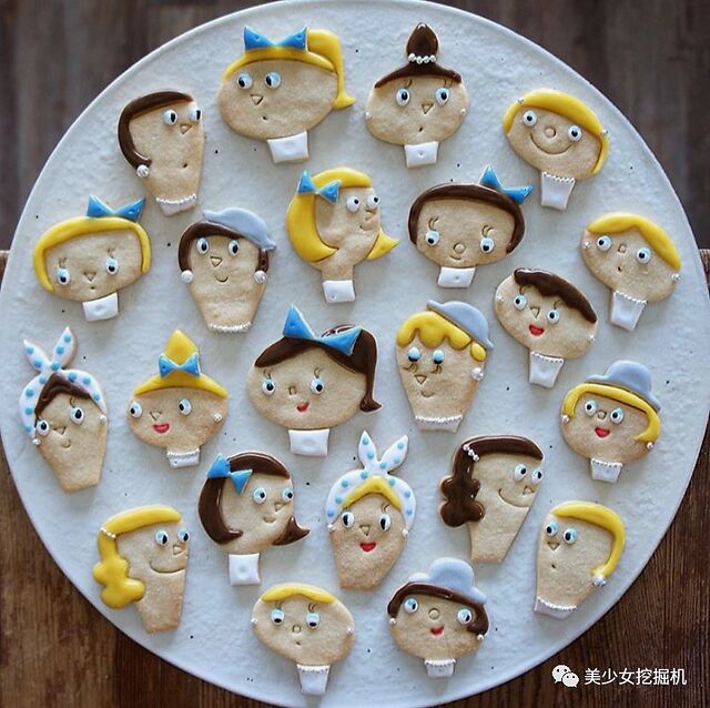 仔细观察,还能发现有的小姑娘被偷偷画上了眼影,在inamorim的世界里,女孩就应该是美丽的。这份饼干放在成人面前我们也许舍不得吃,但孩童们会很开心享受这份下午茶。