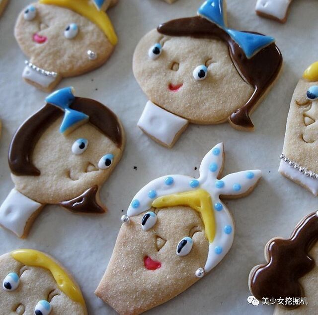 inamorim会把曲奇饼干做成小娃娃的样子,每个娃娃都是不同造型,有扎马尾的姑娘、绑发带的姑娘、还有卡上蝴蝶结的姑娘。
