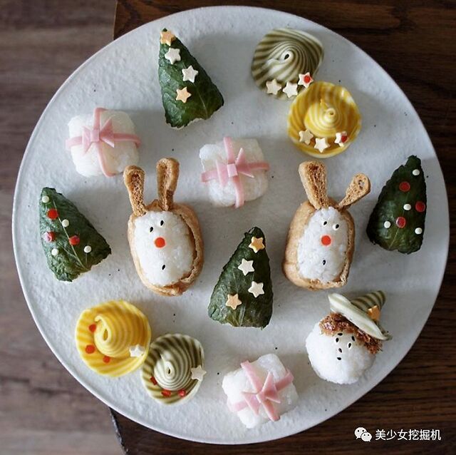 这些普通的食材在圣诞系列的饭团上闪闪发光。