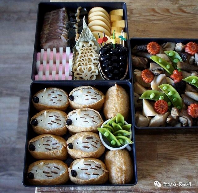 精致便当组合,便当里蔬菜水果搭配的十分均衡,就连卖相都非常精美,每一个便当都像是一个童话世界,趣味性非常强。