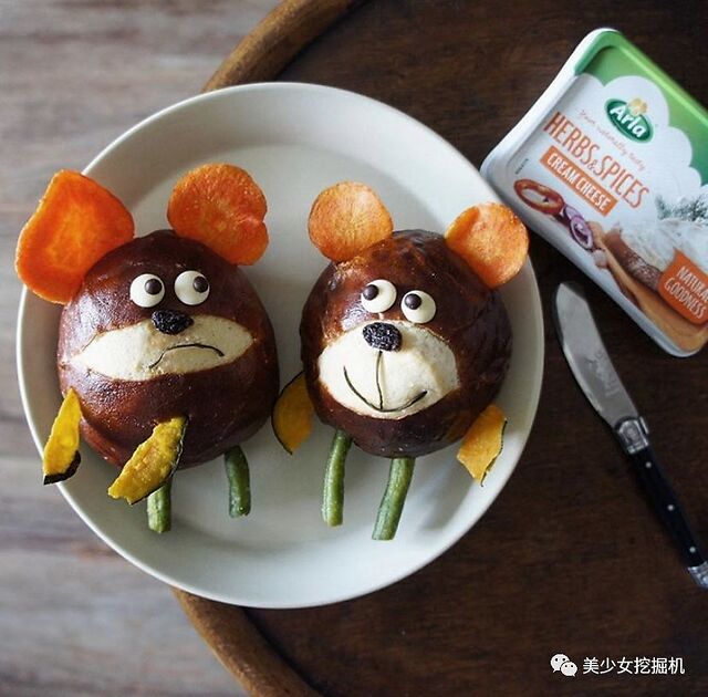 下图的饭团还有教育意义,一个小饭团头发茂盛,另一个小饭团则是秃头,这两个可爱的小饭团告诉小朋友、告诉大家不要过度熬夜,要注意身体,不然会脱发。