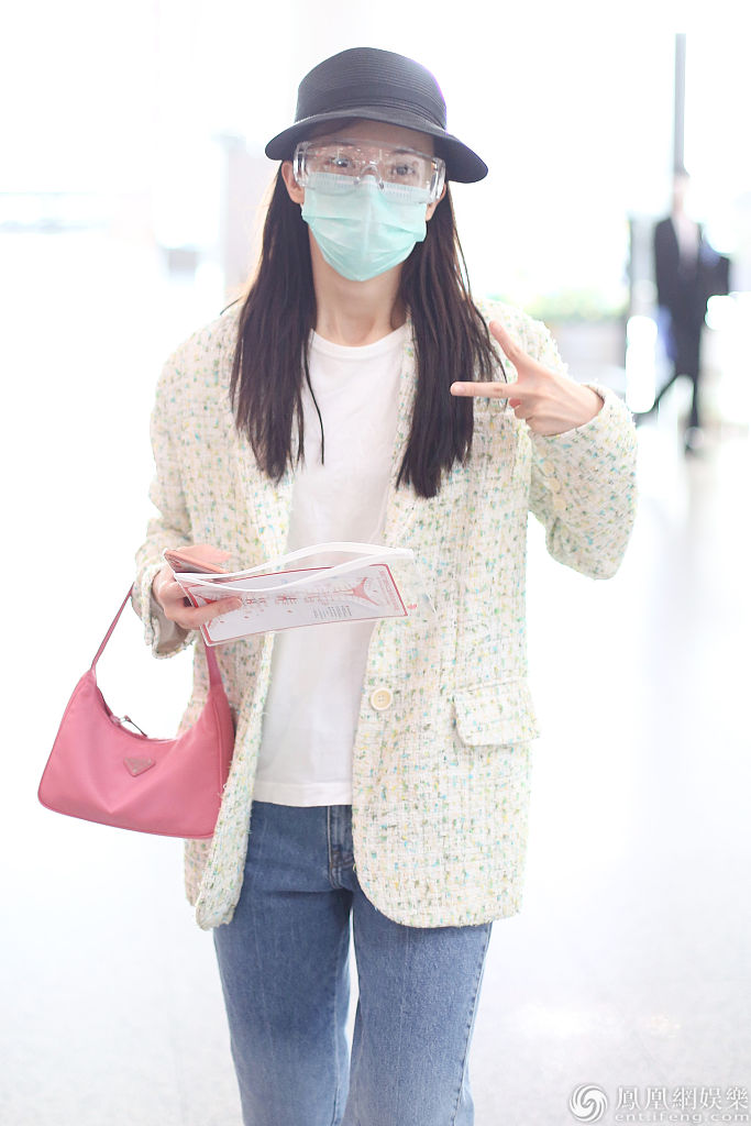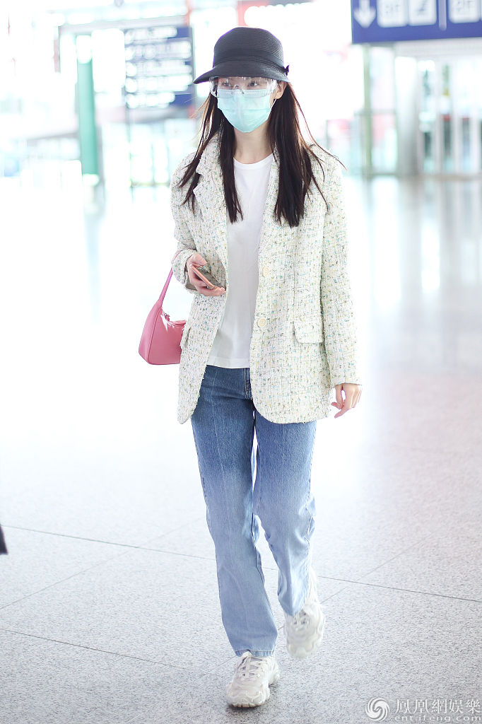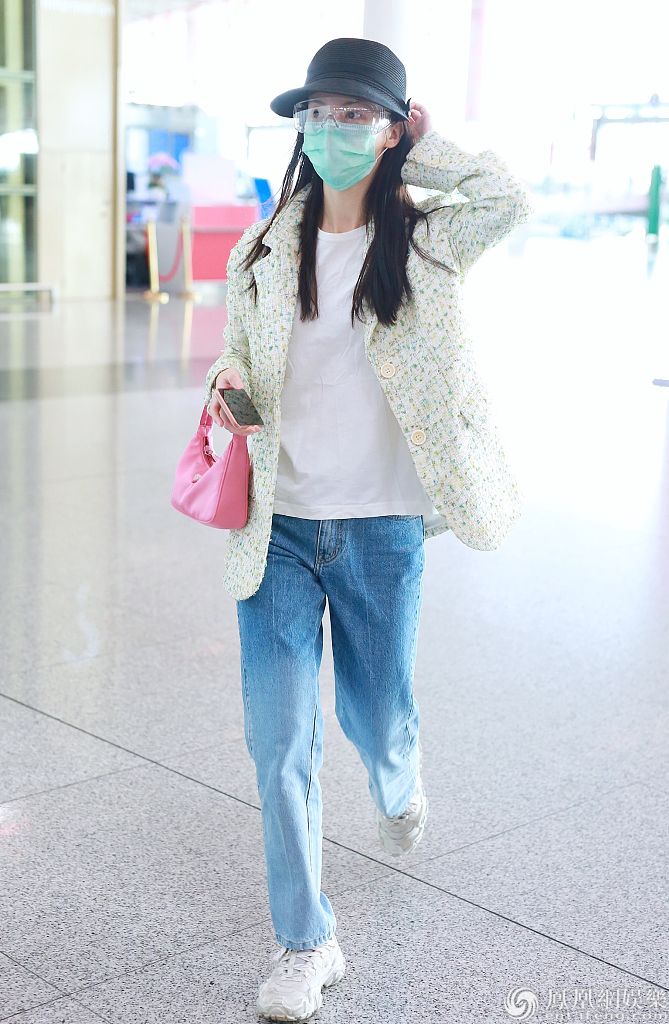 金晨穿小香风西装配渐变牛仔裤造型清新减龄。