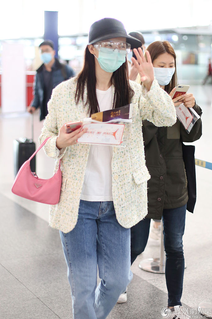 金晨戴三件套包裹严实,防护到位,还不忘暖心招手。