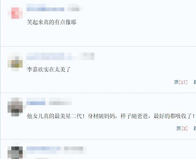 很多网友也纷纷表示:"笑起来真的有点像耶"、"李嘉欣实在太美了"、"他女儿真的最美星二代!身材随妈妈,样子随爸爸,最好的都吸收了"、"很喜欢她,真的是最美星二代!这腿是真长,长的也好看"等等。
