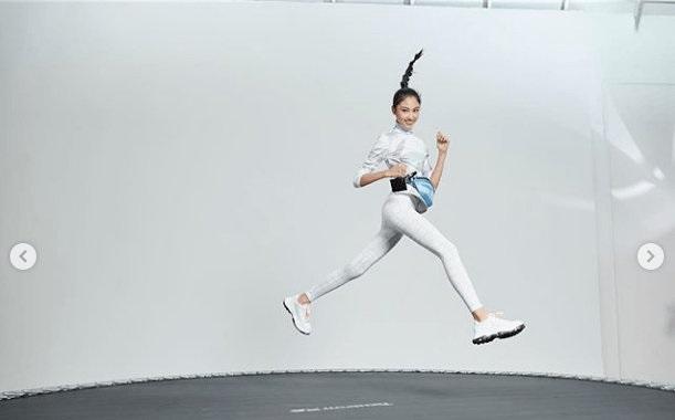 照片里15岁的任晴佳穿着一身白色紧身运动衣和白色运动鞋,腰间挎着一个运动挎包,头发扎得高高的编成辫子。她在空中做出奔跑的样子,整个人显得元气满满,青春靓丽,一双大长腿和不盈一握的细腰十分吸睛。