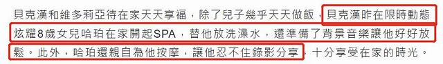 贝克汉姆家族居家隔离乐趣多,三个孩子轮流为夫妻俩服务,让他们每天都乐滋滋,很是享受在家和孩子们相处的时光!