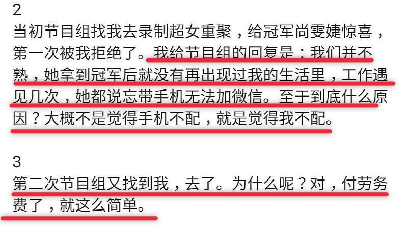 而对于其他选手可能本身不是很熟悉,尚雯婕便没有多加点评,只是简单地说后来慢慢地没联系了。