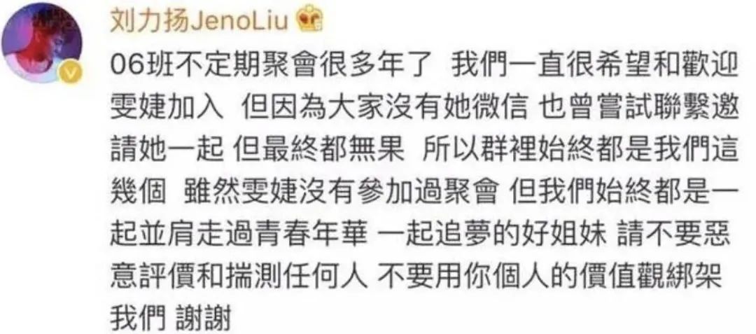 去年年底06班底超女相聚,尚雯婕没有出席。不过刘力扬还大方艾特尚雯婕,让她把自己P上去。