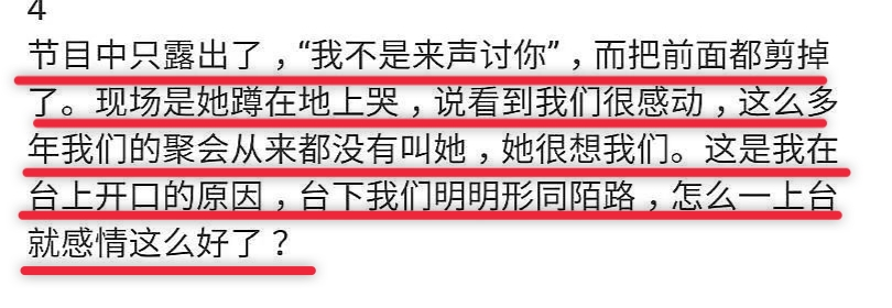 一场重聚搞成撕逼大会,也很难说是谁对是错,不过要说过错方,节目组也有责任,不弄这样一个回忆杀,也就不用重复那么多陈年恩怨了。