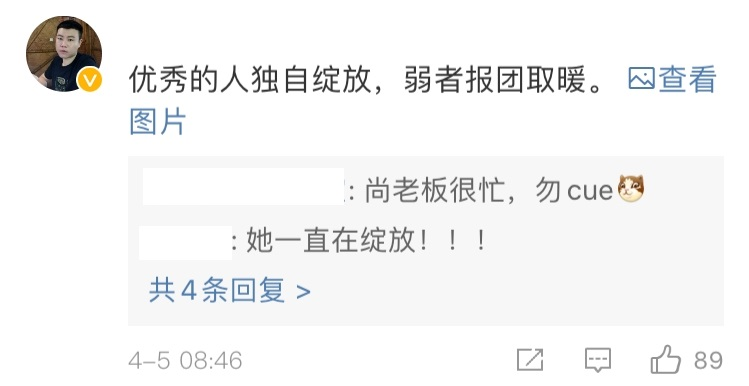 今天厉娜还在粉丝群回复粉丝:每个人都有自己的生存方式,和咱不一样,不代表对与错。