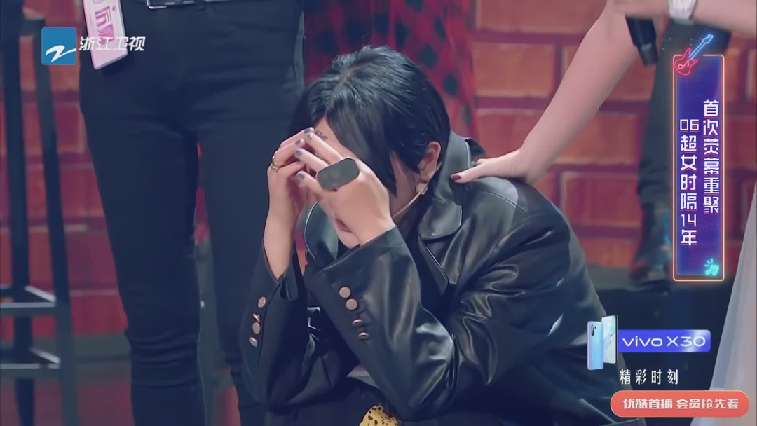 我们还是来看看重聚现场,这是06众超女阔别14年后首次和尚雯婕再聚首。当时尚雯婕激动得蹲在地上哭了。