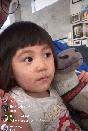 陈冠希最近这几天直播好几次,每次都会跟女儿一起,Alaia又是被迫营业亲爹的说话玩偶,父女俩在家看电视,但陈冠希直播,总是会时不时让Alaia跟粉丝们说几句话,而Alaia也非常听话,爸爸让说什么,她就会说什么。Alaia嘴里吃着好吃的,手里还拿着玩偶,躺在沙发上看电视,时不时配合爸爸的直播,父女俩直播中画面相当温馨幸福。