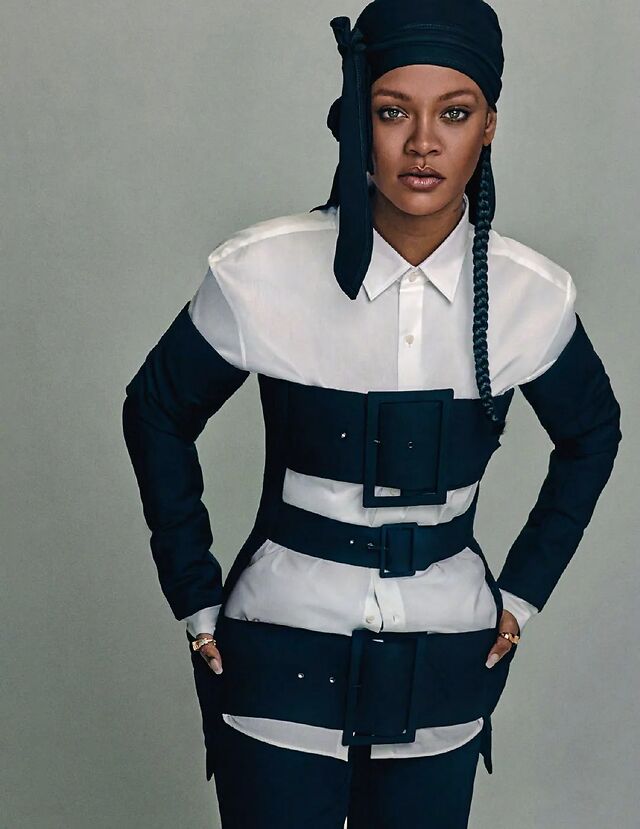 这是蕾哈娜为英国版Vogue拍摄的封面写真。