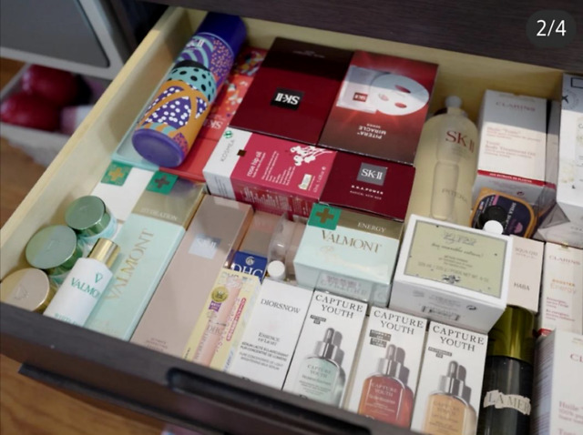 日常生活也算得上优渥舒适了。已经实现了护肤品自由,梳妆桌上一排的贵妇护肤品。