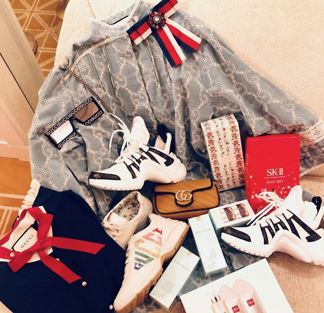 日常购物也实现了名牌自由,衣服鞋子包包都印上了名牌大logo。
