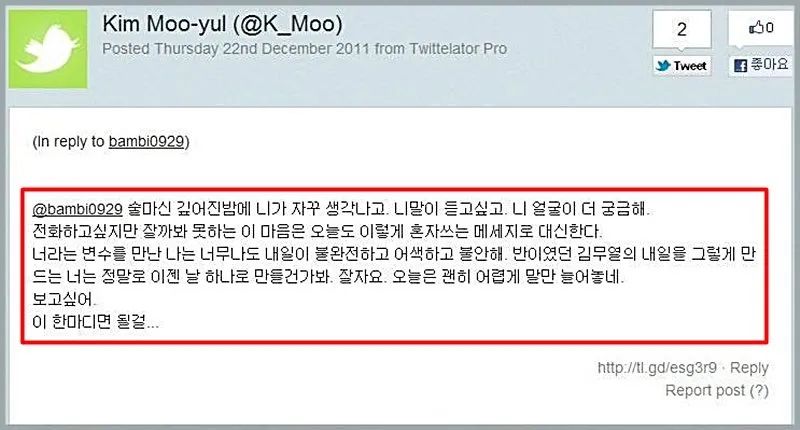 目前来看,虽然粉丝们对于艺人恋爱的看法发生了积极的转变,但是艺人真正公开恋爱的话,还是会有很大的压力。而当演员们公开恋爱时,最担心的就是怕观众无法投入其出演作品中的爱情戏。因此大部分演员如果没有结婚的打算,都会否认与之相关的恋爱传闻。在这种情况下,有一位男演员却因酒后失误意外地公开了自己的恋情,而热恋的对象还是一位女演员。 因自己的失误而公开恋情,并且还做好了“可能会被女友提出分手”的思想准备的这位主人公就是演员金武烈。而这段往事正是他和女友也就是现在的妻子演员尹胜雅,在2011年刚开始恋爱时发生的乌龙事件。 金武烈2003年以电影《幸福的家庭》出道,尹胜雅 2006年以情景喜剧《彩虹罗曼史》出道,虽然两人同为演员在演艺界进行活动,但金武烈主要集中进行音乐剧演出等活动,因此俩人并没有结缘的机会,而让两人真正结缘的契机是音乐剧。 某次,尹胜雅和朋友去看音乐剧,正好看的是金武烈表演的那一场,因为金武烈在演出时展现的帅气模样,所以 尹胜雅 对他产生了好感。 (音乐剧演出现场) 那之后,金武烈和尹胜雅又偶然在一次熟人的聚会上相遇,在朋友的介绍下俩人开始相识。就这样,一直以来对金武烈存有好感的尹胜雅打破传统男追女的观念,对金武烈展开追求,2011年两人最终发展成为情侣,开启了恋爱模式。 然后, 两人就在交往过程中发生了传说中的乌龙事件——SNS公开恋爱消息 。2011年11月,因为喝了酒而感性爆发的金武烈在个人推特上私信尹胜雅“喝着酒的深夜总是会想起你,想听你说话的声音,更想见你一面。想打电话又怕吵醒你,所以今天也用这样独自写下的告白来代替传达我的心。遇见了名为你的变数,既敏感又不安,但也正是你的出现让我变得完整。晚安,今天无端地说了这么多,其实只要一句话就足够了,我想你”,向尹胜雅发送了充满爱意的信息。 金武烈以为给尹胜雅发的私信其实是公开的信息 ,就这样大众也看到了金武烈对尹胜雅的深情告白。之后,他很快意识到发生了失误并马上删除推文,本以为这一番快速操作神不知鬼不觉,没想到互联网是有记忆的,于是第二天关于两人恋爱的消息就被传开了。 在两人恋爱的消息被新闻媒体疯狂报道时,当时正在剧组拍戏的尹胜雅还对此事毫不知情,6个多小时都联系不到她。事后,金武烈表示当时有关两人恋爱的新闻不断地被发出来,根本没有办法阻止,只能焦急地等待尹胜雅的回复。如果对方说要分手的话,也只能分手了,因为是自己犯下错误而导致的。后来听到这个消息的尹胜雅很酷地说:没关系,既然这样了那就公开恋爱吧。于是,两人并非本意地公开了恋爱关系。 对于当时的情况,金武烈曾表示:“那会儿喝酒了却没有到醉的地步,觉得有点奇怪。那段时间我在拍摄电影《银娇》,可能是太沉迷于角色了吧,在电影中我饰演一个梦想成为诗人的小说家,期间为了更好地演绎角色还曾学习过诗歌写作。发生那件事是因为,喝了点啤酒在回家路上突然间就变得很感性,于是给她发了私信,结果却成了公开推文,然后就这样公开了我们的恋情”。 《银娇》 他还表示:“而且可能是刚刚开始交往,所以更加地感性吧,原本陷入爱情的话不都会这样吗?从那件事以后,我就有了一个外号‘光明的莎士比亚’一直在被熟人拿来调侃hhh”。实际上,当时两人开始交往还不到3个月,既是同事又是恋人的他们,相互依靠彼此的同时,培养了更深的感情,却以出乎意料的方式向大众公开了恋爱事实。 然而,就在两人公开恋情后,2012年金武烈因涉嫌逃避服兵役的问题而陷入了巨大的争议之中。当时,监察院通过兵役现状调查表示,因生计困难受到免除兵役的金武烈,实际收入超过了免除兵役的标准。复审结果显示,虽然金武烈并不是故意的,但由于兵务厅相关负责人的工作疏忽,所以对其免除了兵役。 对此,金武烈表示并没有逃避服兵役,而是按照兵务厅的指示诚实的接受了审查。实际上,早在2002年金武烈的父亲因脑出血病倒后,他就承担起了负责一家生计的重担。2008年父亲又被查出患上癌症,更是雪上加霜,不仅要偿还医疗费欠下的债务,还需要照顾母亲和弟弟。只是无论金武烈的意图如何,兵务厅对其进行免除兵役不符合标准的事实表明,他入伍是不可避免的。于是,金武烈在调查结束后开始服役,这期间作为女友的尹胜雅一直默默陪伴他,给了他很大的鼓励。 可能是因为一起度过了那段艰难的时期,两人的爱情变得更加坚定,金武烈退伍后不到一年,2015年就和尹胜雅步入了婚姻的殿堂。两人在南阳州的某餐厅举行了室外婚礼,更有一众圈内外好友到场祝贺。 此外,金武烈表示结婚当时,经常被人问到“退伍后比起结婚不是应该先以演员站稳脚跟吗?”而金武烈用一系列的行动回答了这些问题。婚后作为演员的他更加活跃地进行着演艺活动,最近成为了电影界备受关注的男演员之一。包括妻子尹胜雅也出演了电影《灿实很有福气》,作为演员持续活动着,为了和粉丝们能够近距离地沟通,还开设了名为“승아로운”的YouTube频道。 《侵入者》 《灿实很有福气》 2003年出道的金武烈,代表作 有《一枝梅 》 《银娇 》《我的美丽新娘》《记忆之夜 》《恶人传 》《坏家伙们:恶之都市》《被遗忘的季节》等。 《一枝梅》 《我的美丽新娘》 《恶人传》 《坏家伙们:恶之都市》 