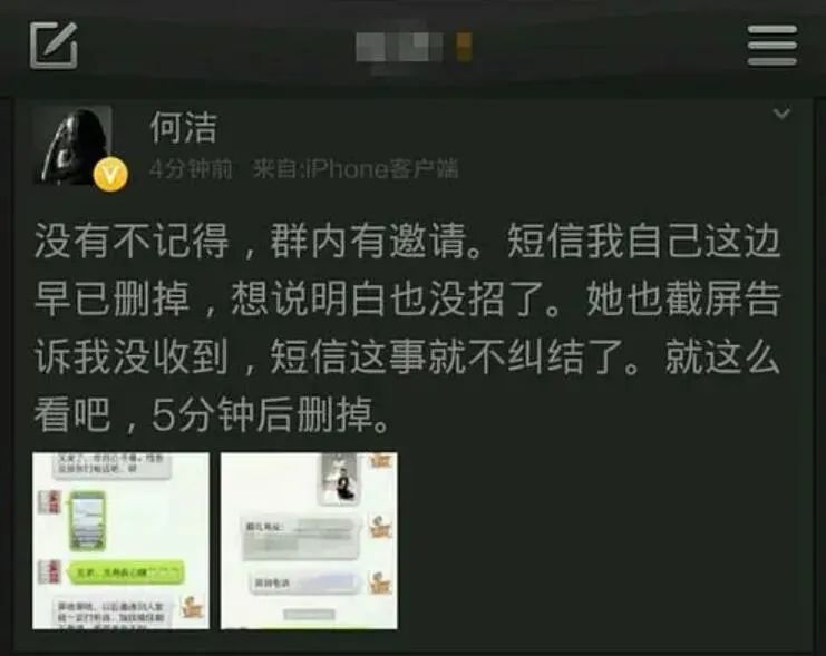 何洁又发了长微博表示有短信截图,自己没说谎。