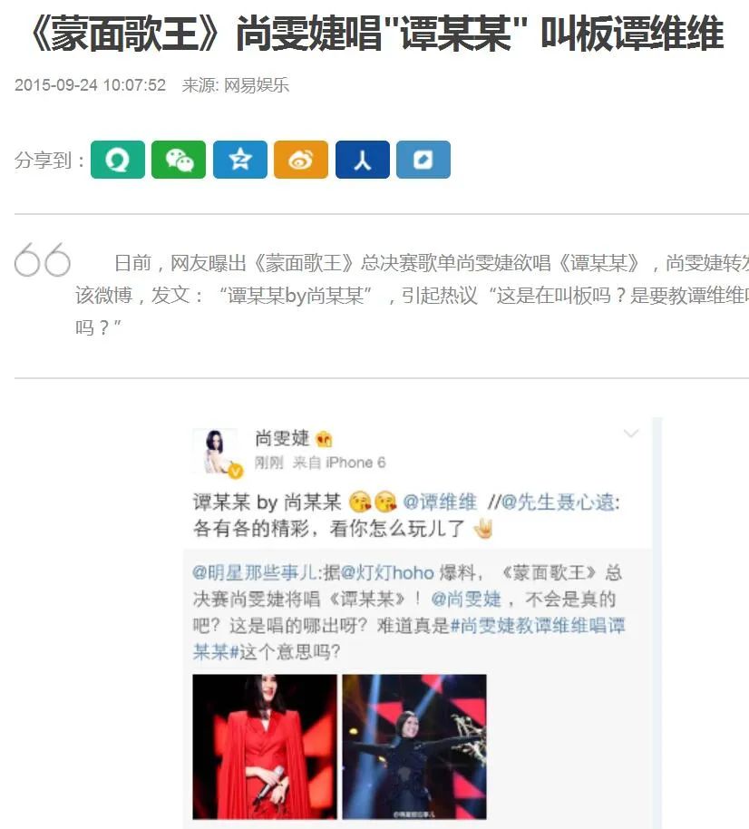 多年之后她俩分别上了《我是歌手》,《新闻当事人》中再提到这件事,尚雯婕说如果谭维维再唱《谭某某》,她就飘上台伴舞。在《蒙面歌王》,尚雯婕演唱这首《谭某某》,并且修改了歌词:我站在亚军右边,陪她嬉皮笑脸,我样样都不如她。