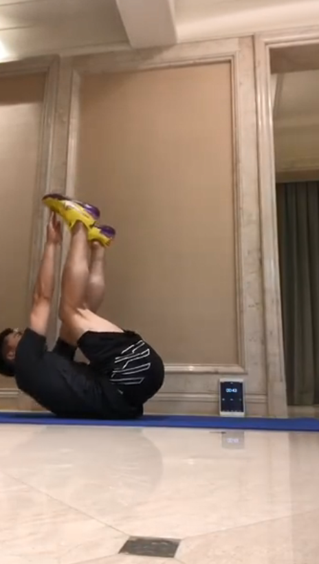 4月6日,李易峰在个人社交平台分享了一则完成直腿触足卷腹挑战的视频。李易峰十分严格,拿着平板先设置好了时间,蹲在角落里十分可