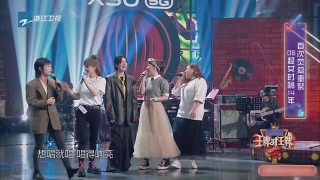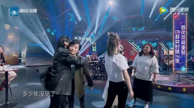 当节目进行到一半的时候,当年超女的前几名许飞、唐笑、厉娜、韩真真等人一起唱着《唱的响亮》从后台走出来,给尚雯婕一个惊喜。