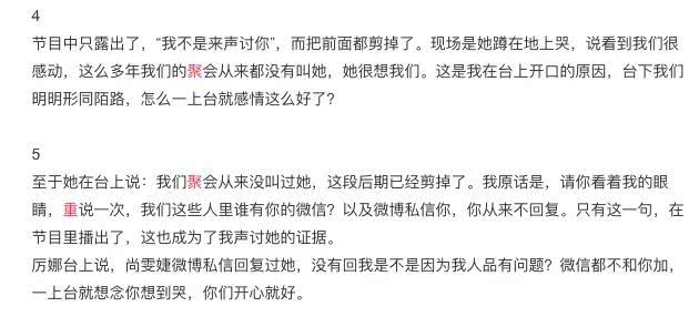 而整段文字最精彩的就是声讨那一段,本来在台下还形同陌路,怎么一上台就姐妹情深了。虽说娱乐圈有很多表面关系,但是像许飞这样直接搬上台面说出来的,还真是少见。
