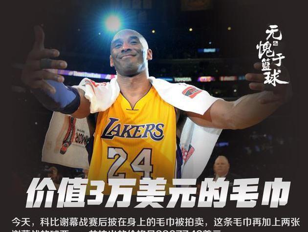 就在不久前的3月30日,一条科比职业生涯谢幕战赛后身上披着的毛巾被高价拍卖。