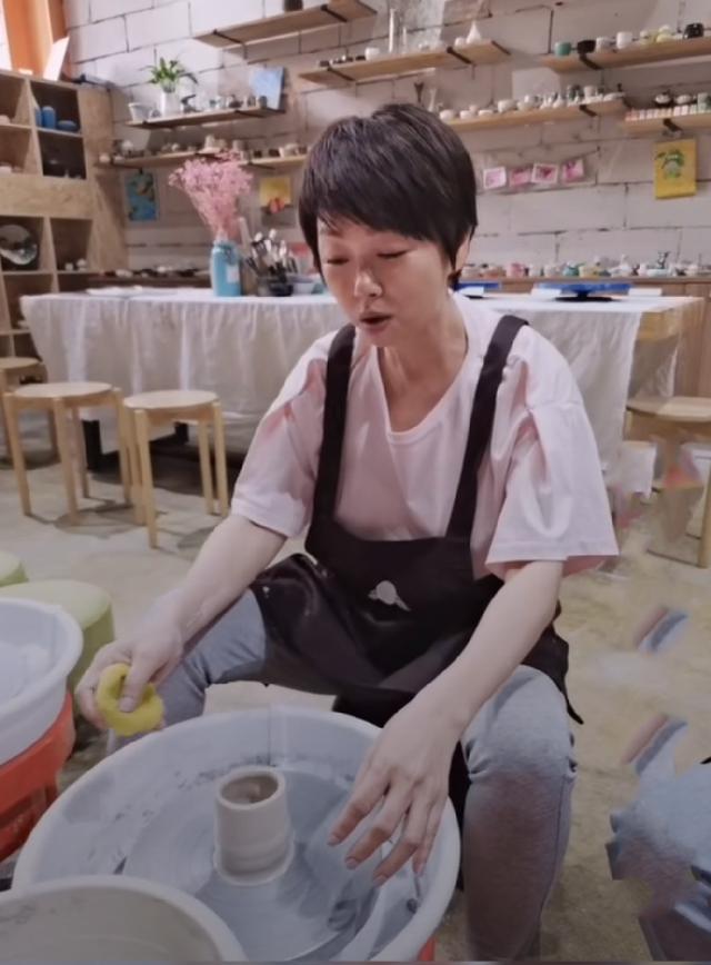 4月7日,刘玉翠在个人社交平台上晒出了一段唱歌视频,穿着粉色T恤,和深色围裙的她,坐在陶艺馆中捏泥巴。