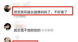 难怪网友留言吐槽,称:“差点没认出来”“感觉奥莉越长越像妈妈了,不好看了。”