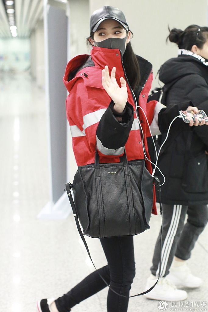 2019年1月18日,北京,欧阳娜娜早前现身机场。她穿红色外套对镜挥手元气十足,皮肤白皙眉眼能打少女感满