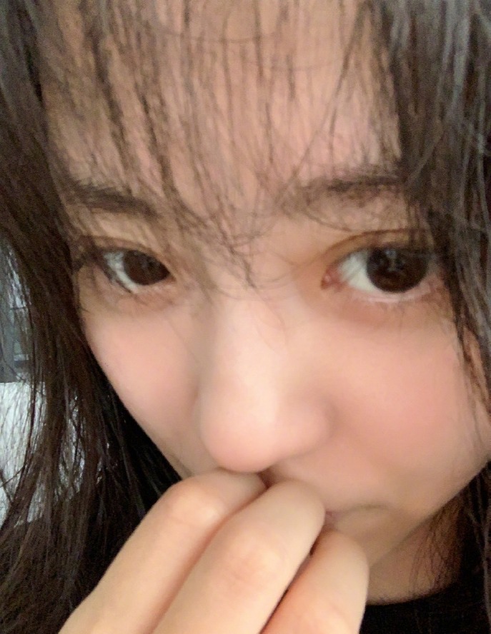 照片中的张靓颖秀发微湿,皮肤白里透红,她用手抵着嘴唇,对镜卖萌,少女感十足。