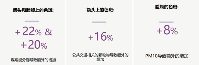 而且现在城市中日益严重的污染问题,会使很多对皮肤有损害的物质附着于皮肤之上,导致皮肤的氧化应激加剧,黑色素活跃过度,炎症反应增强。