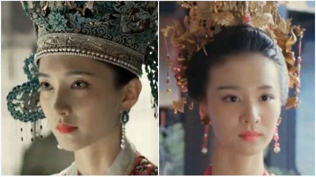 跟同剧演员一起感觉一下,江疏影确实更为凌厉。(没有捧谁踩谁的意思,只是客观比较一下和通俗说的古装脸的贴合度)