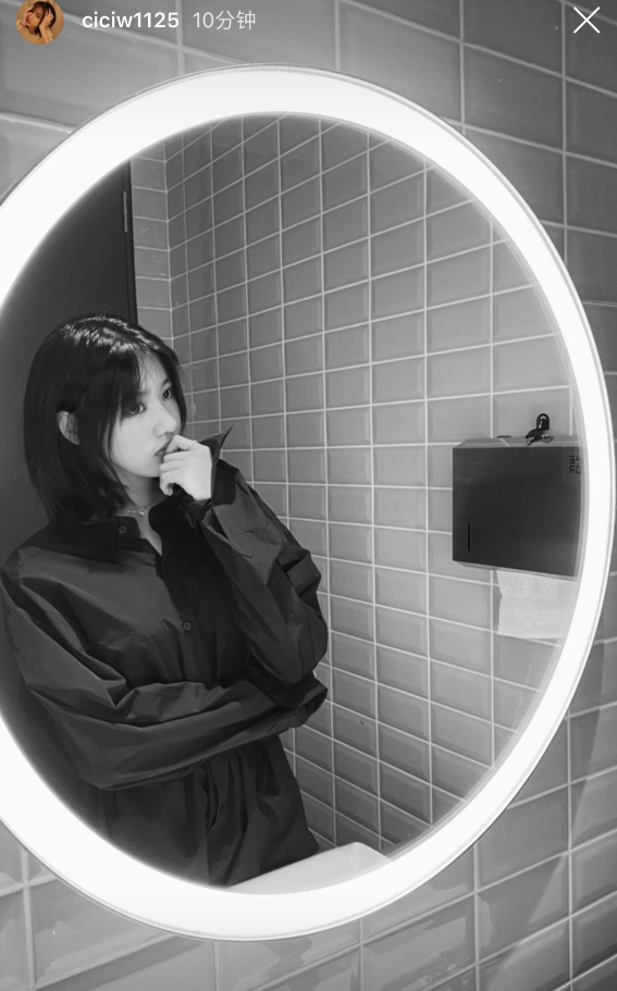 4月7日熙熙在ins上分享一张美照,她罕见晒出自己穿衬衫的美照,她站在镜子前摆pose,很有自信,看起来显成熟。